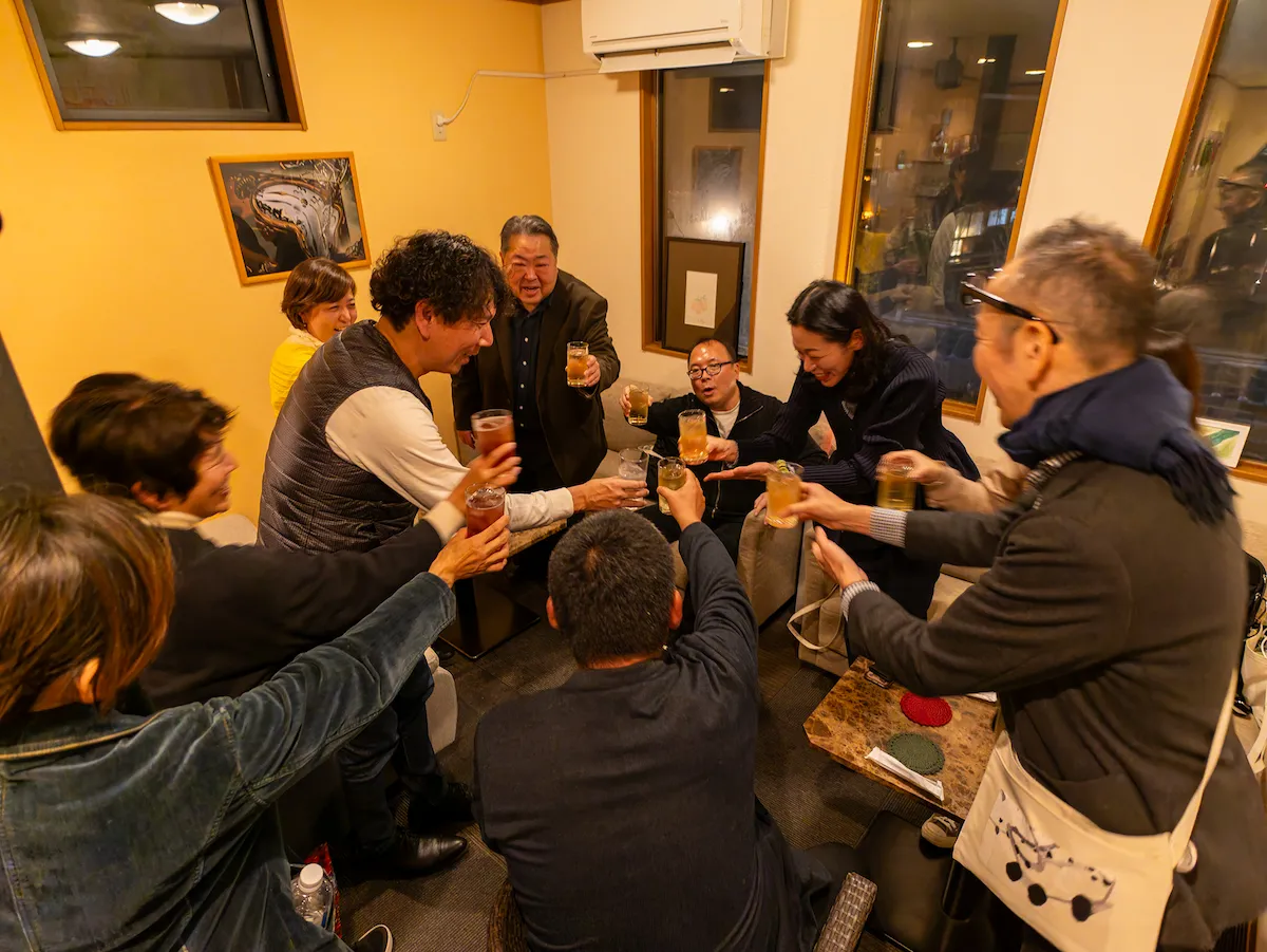 パーティーの余韻の中で地元の民藝家や職人と直接語り合い、倉敷の文化や産業に深く潜り込むバーホッピング体験は、地域との繋がりを通じて新たな視座と刺激を得る、特別な夜のフィナーレを演出します。